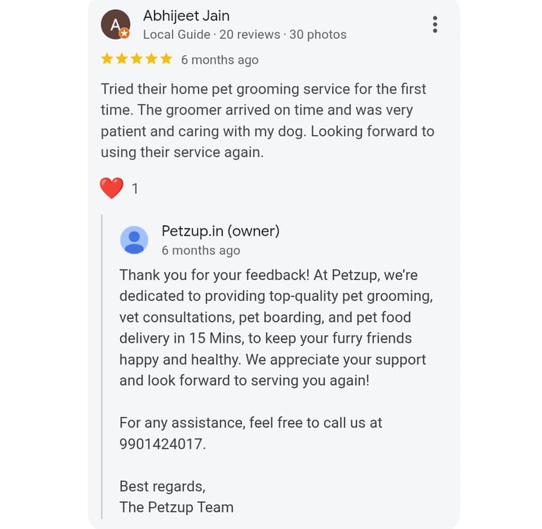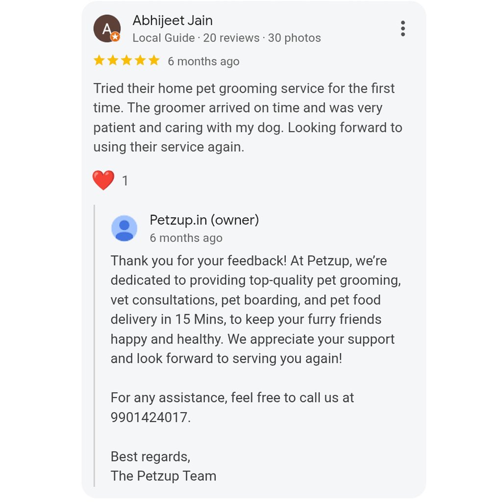 “PetzUp.in is Bengaluru’s trusted choice for premium pet grooming. Our certified groomers bring stress-free dog and cat grooming to your doorstep, using safe, vet-approved products. Book and give your pet the care, love, and comfort they deserve.”